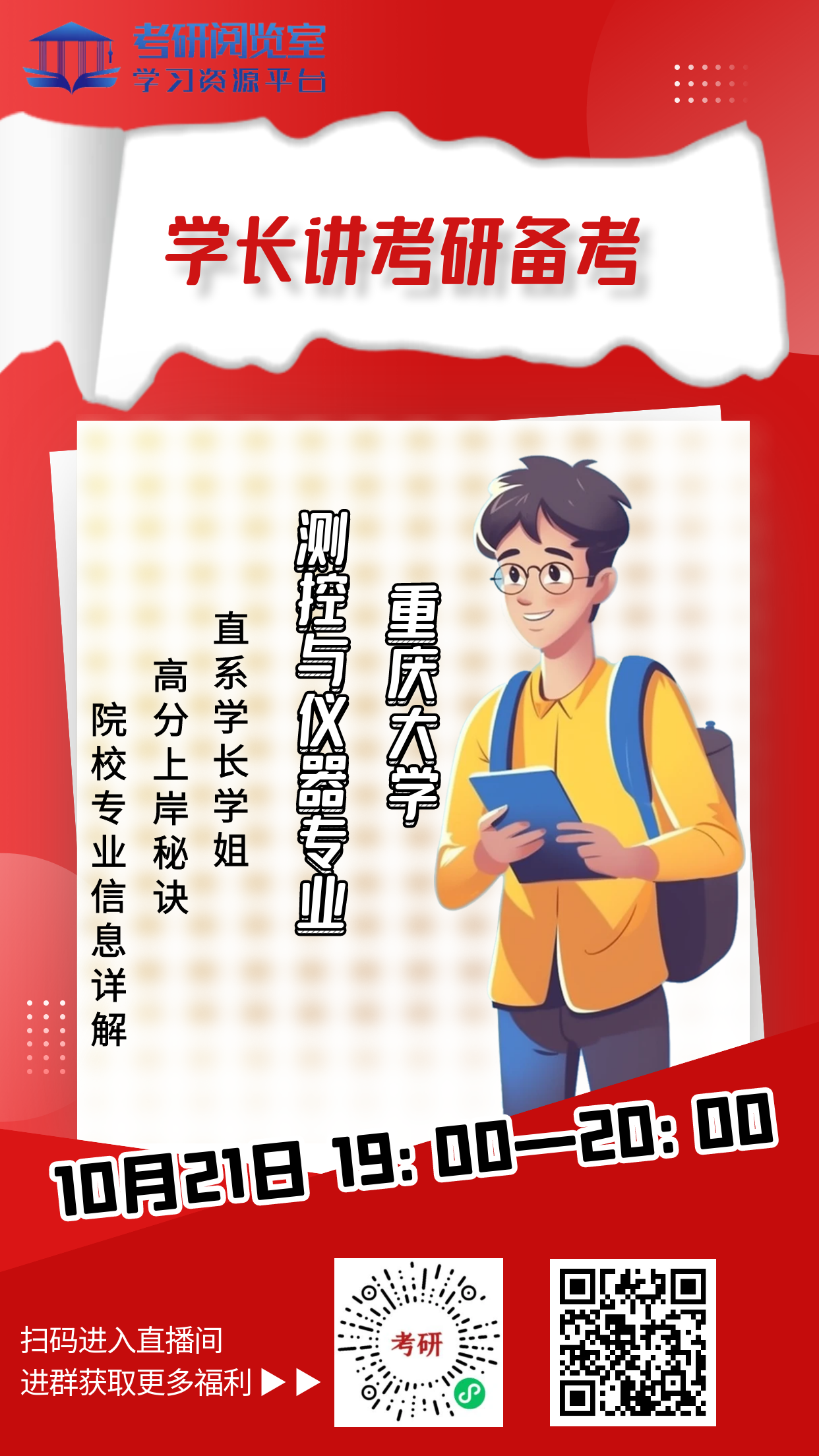 本次直播由重庆大学测控与仪器专业学长亲授备考经验!学长结合自身考研经历,带你深入了解该专业考研备考要点、复习方法,还能分享院校报考相关实用信息,帮你少走弯路,高效备考!