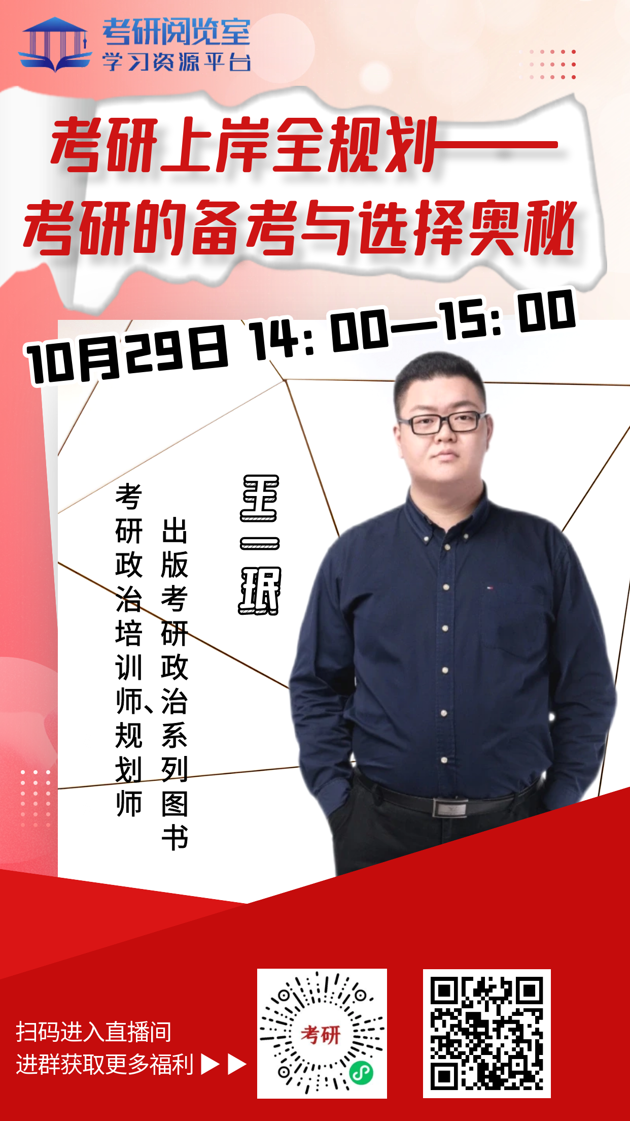王一珉老师聚焦考研 “备考” 与 “选择” 两大核心问题,为你拆解考研上岸全规划!从备考计划制定到目标院校专业选择,手把手教你避开误区,找准方向,让你的考研之路更清晰、更顺畅,大大提升上岸可能性!