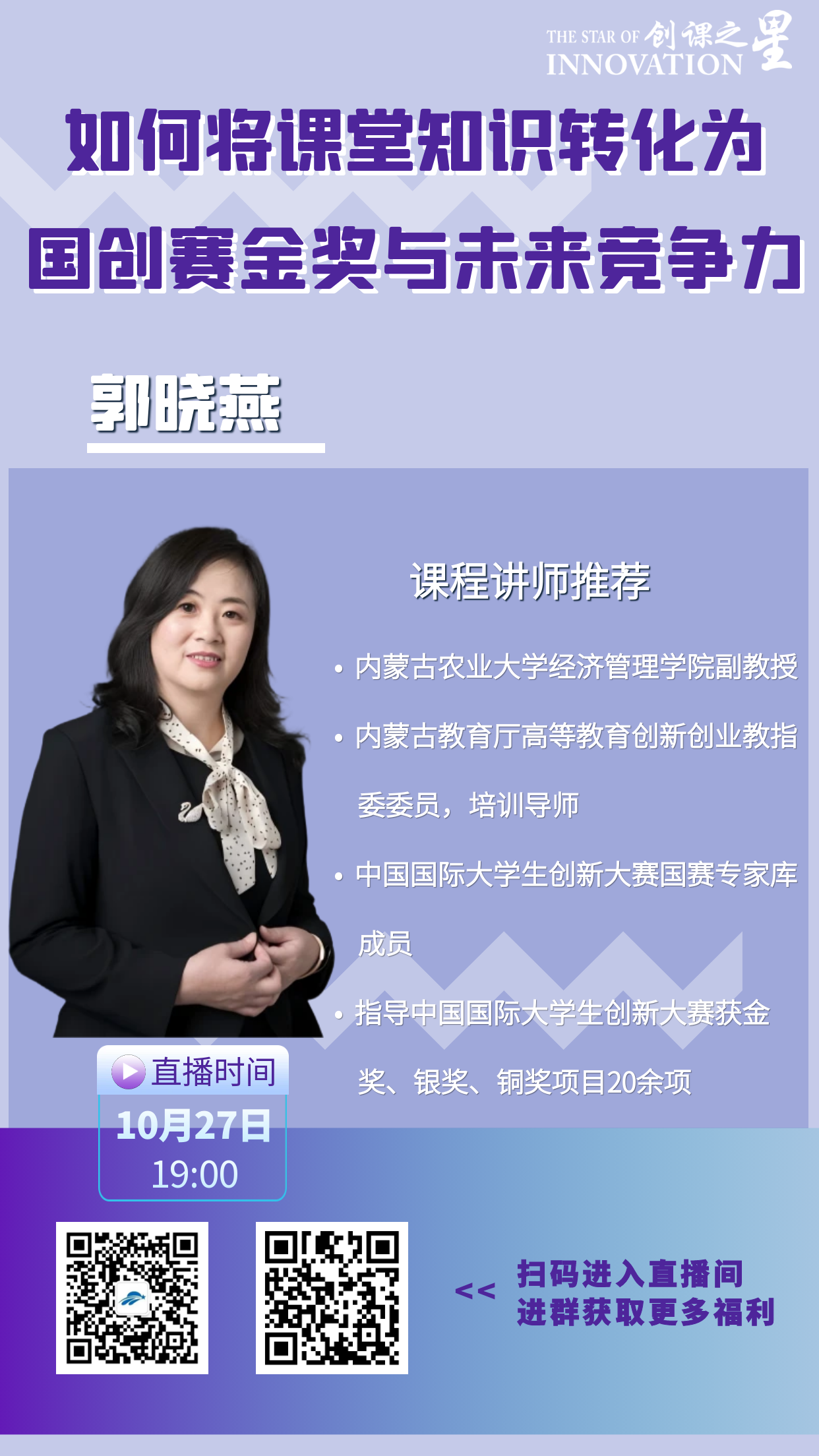 我们非常荣幸邀请到了范斌老师与郭晓燕老师。两位老师将结合他们的专业知识和实践经验,从创新思维培养到国创赛金奖冲刺,为想提升创新竞争力、冲击赛事荣誉的学子提供专业指导!